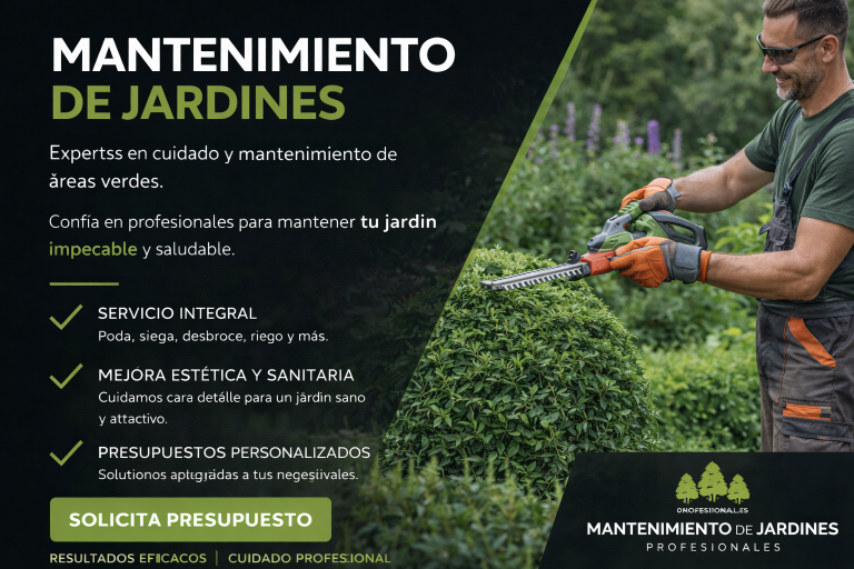 Servicio de jardinería profesional enfocado en mantener y mejorar el estado de tus zonas verdes. Realizamos corte de césped, poda, desbroce, limpieza de jardines, control de malas hierbas y mantenimiento general.